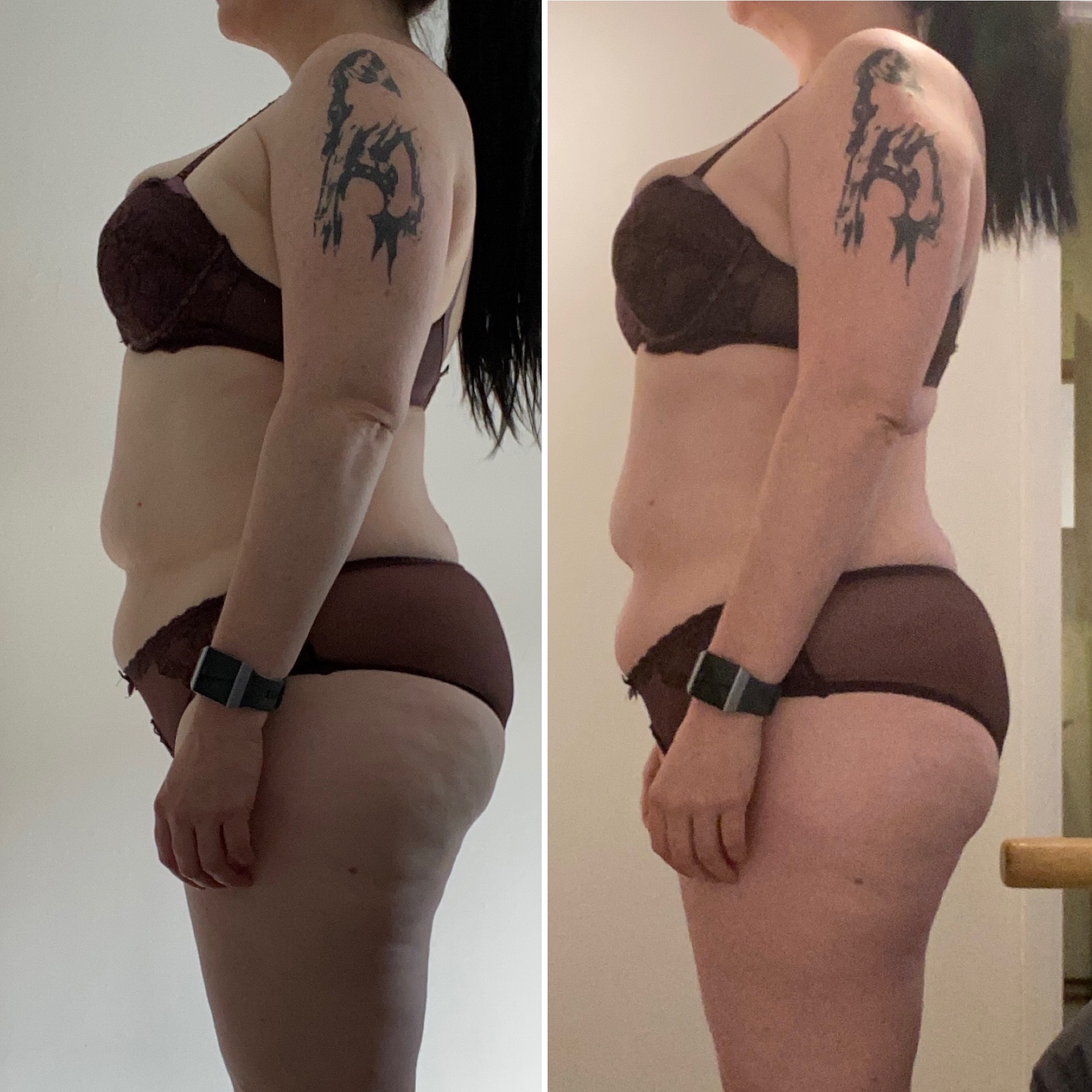 So very happy with an overall loss of 8.2lbs or 4kg and 6.5 inches lost in total (18 cm). And that’s just the first month. It’s like I know what I’m doing and the science behind it or something!! And while there doesn’t appear to be much difference in these pictures there are things I can see.